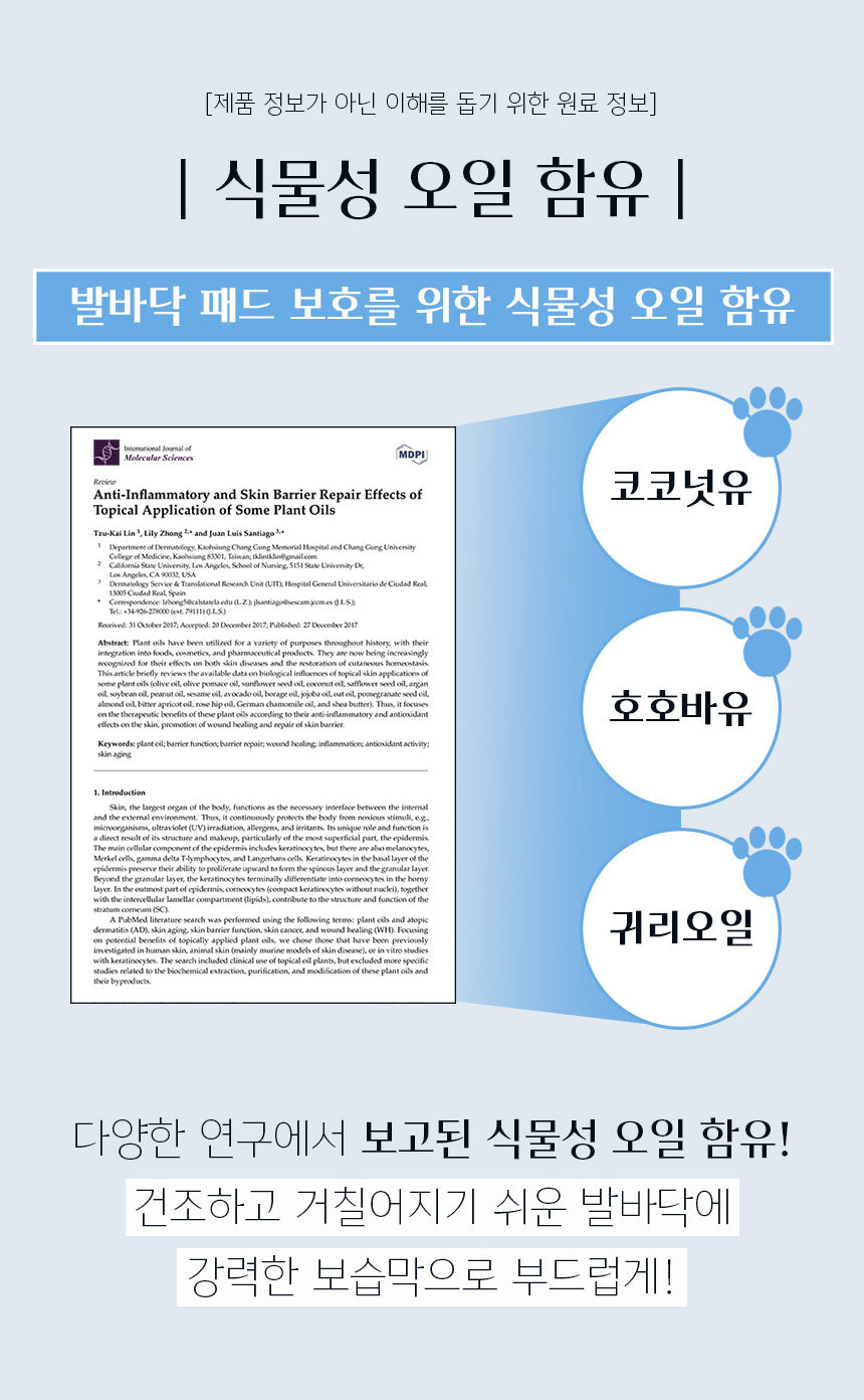Contains vegetable oil to protect foot pads