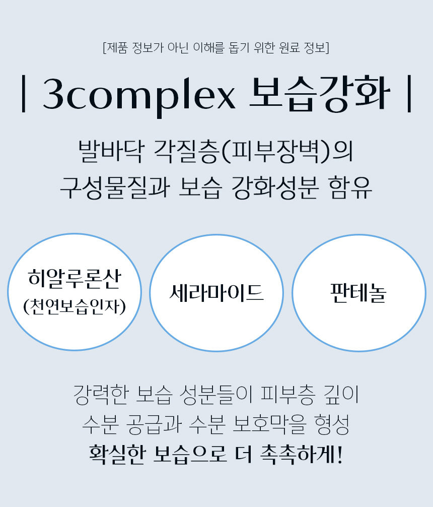 Contains components of the stratum corneum (skin barrier) of the soles of the feet and moisturizing enhancing ingredients.