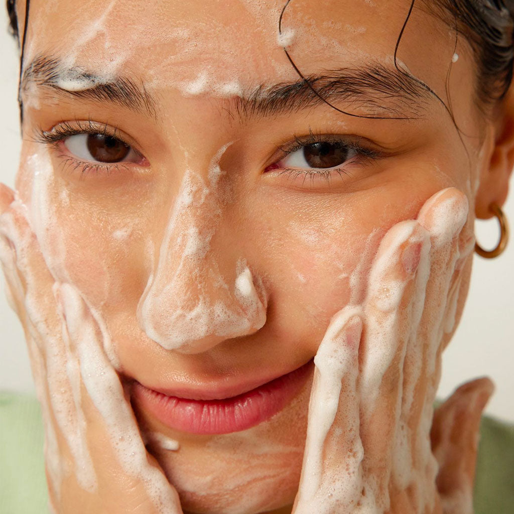 2) Lather well and then gently massage onto wet face with the foam.