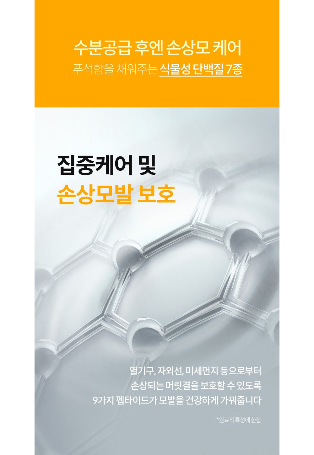 - Damaged Hair Care: Seven types of plant proteins intensively care for and protect damaged hair, filling in dullness.