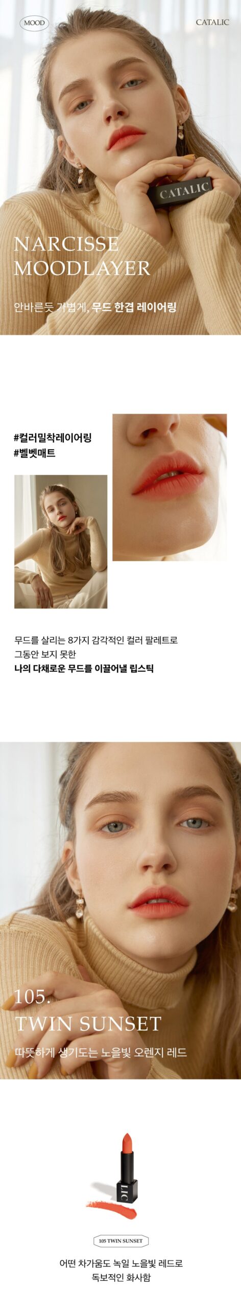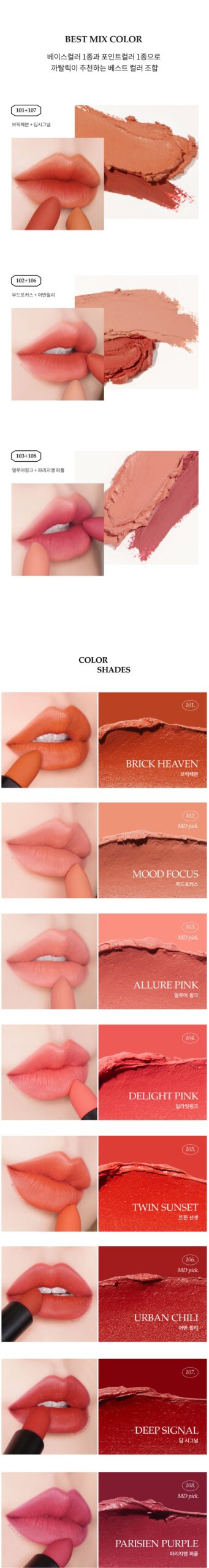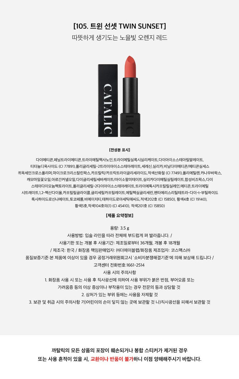 Korean lip products are often celebrated for their innovative formulas and color payoff. CATALIC's lipstick likely employs advanced pigment technology to achieve a vibrant, even color distribution while maintaining a comfortable wear.