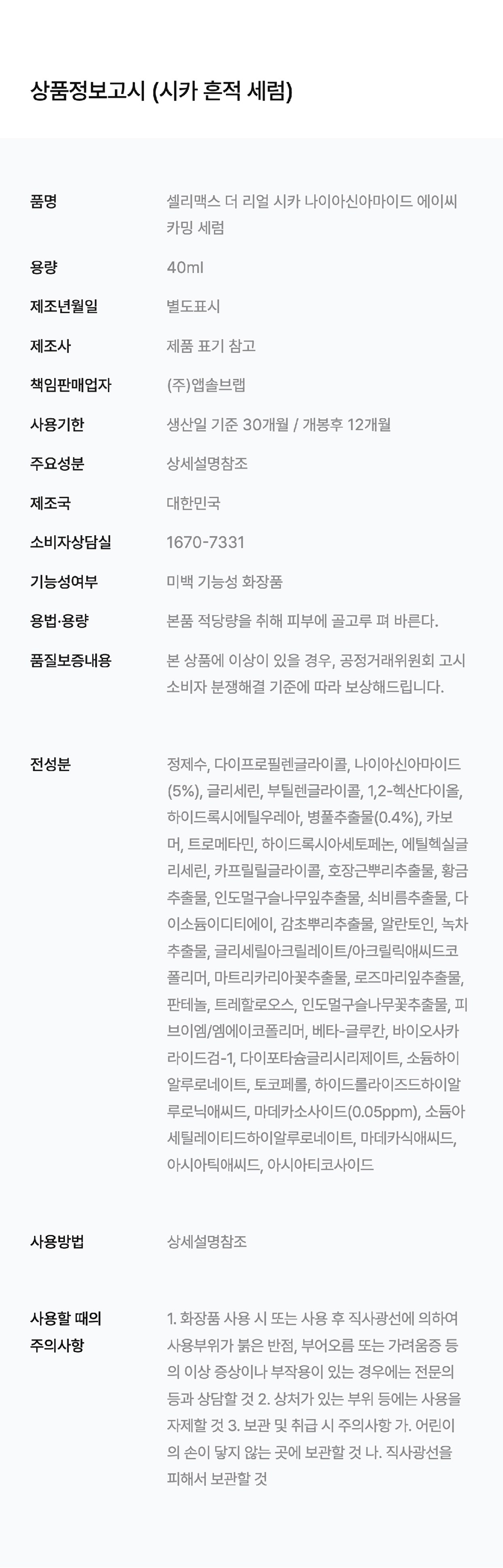 | Product Name | CELIMAX The Real Cica Niacinamide AC Calming Serum |