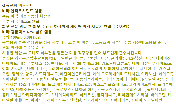 This ampoule brightens my face well. Absorbs fast, no greasy feeling afterward. Slightly pricey but worth it for results.