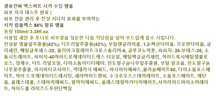 - Cica Complex: Contains 84% cica (Centella Asiatica) complex for maximum soothing.