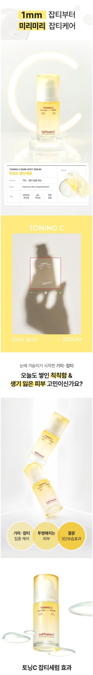 It is Toning C Dark spot serum that provides intensive care for blemishes, freckles, and dull skin improvement.