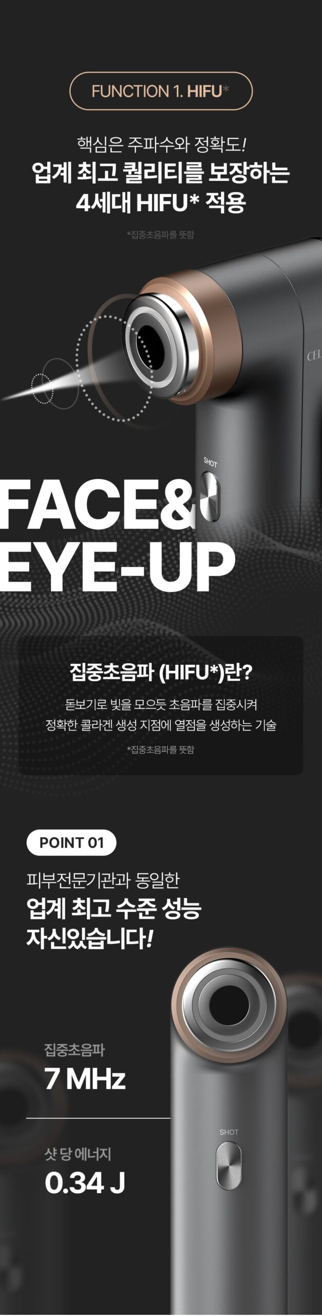- FACE-UP: 20 dots per shot of 3.0mm focused ultrasound provide flawless elasticity care with a patented line shot technique.
