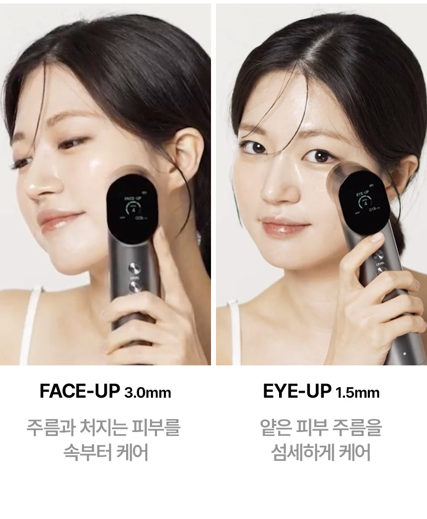 - EYE-UP: 20 dots per shot of 1.5mm focused ultrasound, specifically targeting eye area wrinkles.