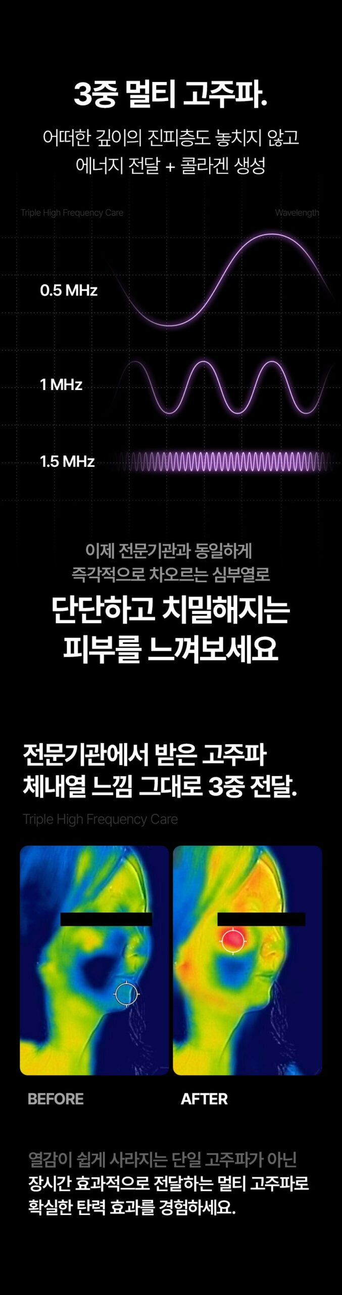 The triple multi-frequency system raises the dermal temperature, stimulating fibroblasts that work on wrinkles and enhance skin elasticity. The device targets varying skin thicknesses and dermal depths, ensuring effective collagen production without missing a beat.
