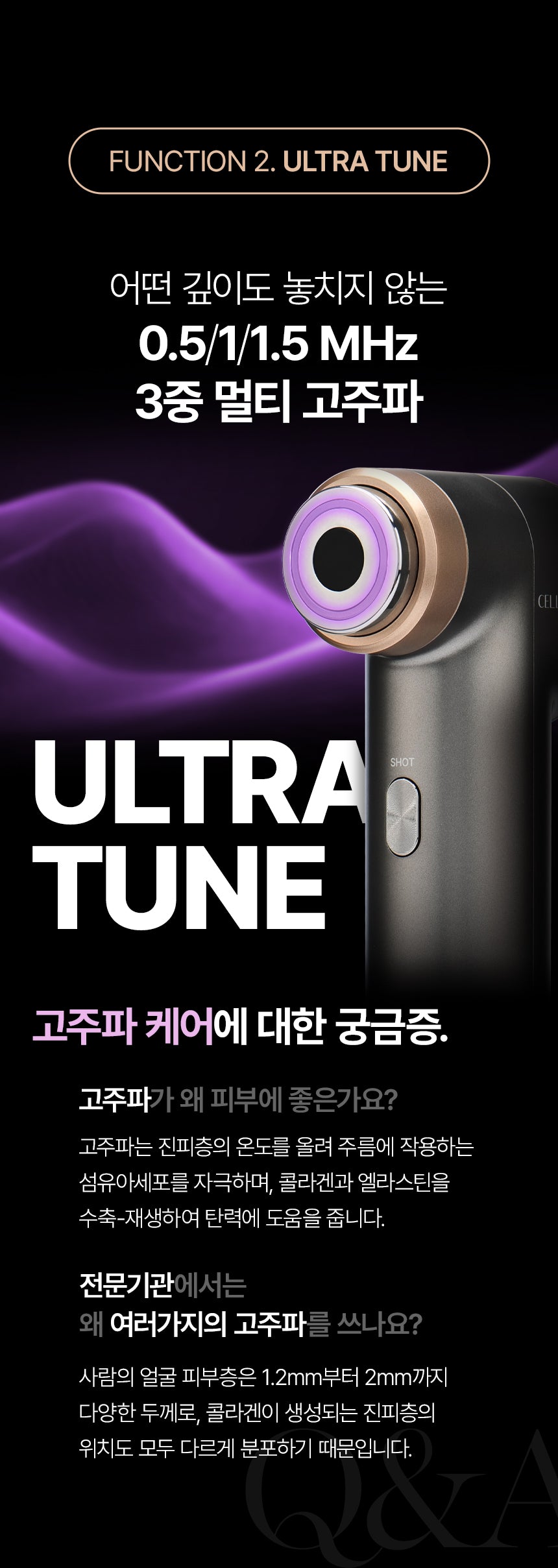 - ULTRA TUNE: Delivers 0.5-1-1.5 MHz multi-frequency high-frequency energy to stimulate collagen production.