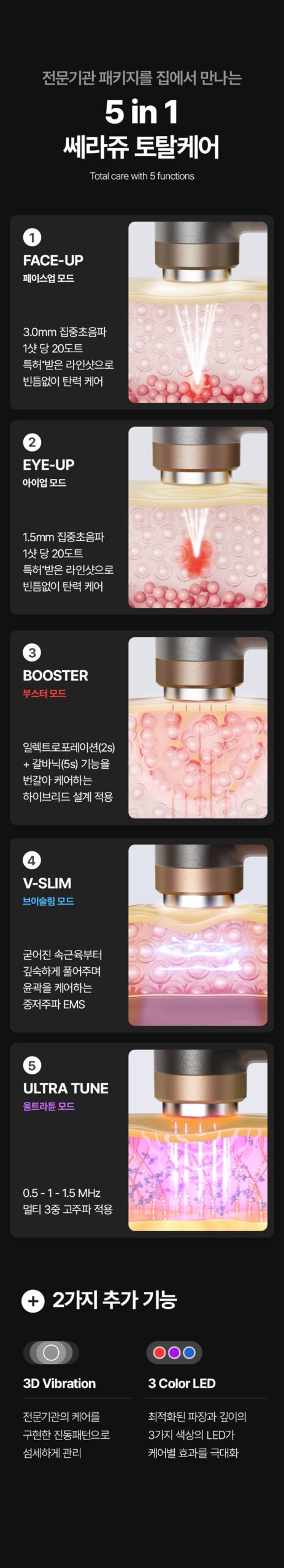 - HIFU + High Frequency + Mid Frequency + Skin Boosting