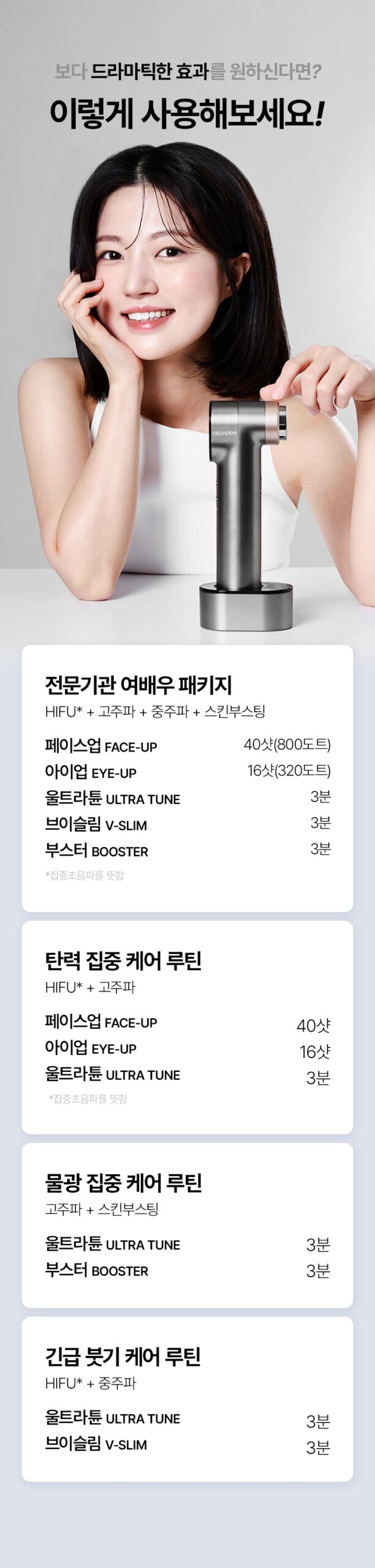 - FACE-UP: 20 dots per shot of 3.0mm focused ultrasound provide flawless elasticity care with a patented line shot technique.