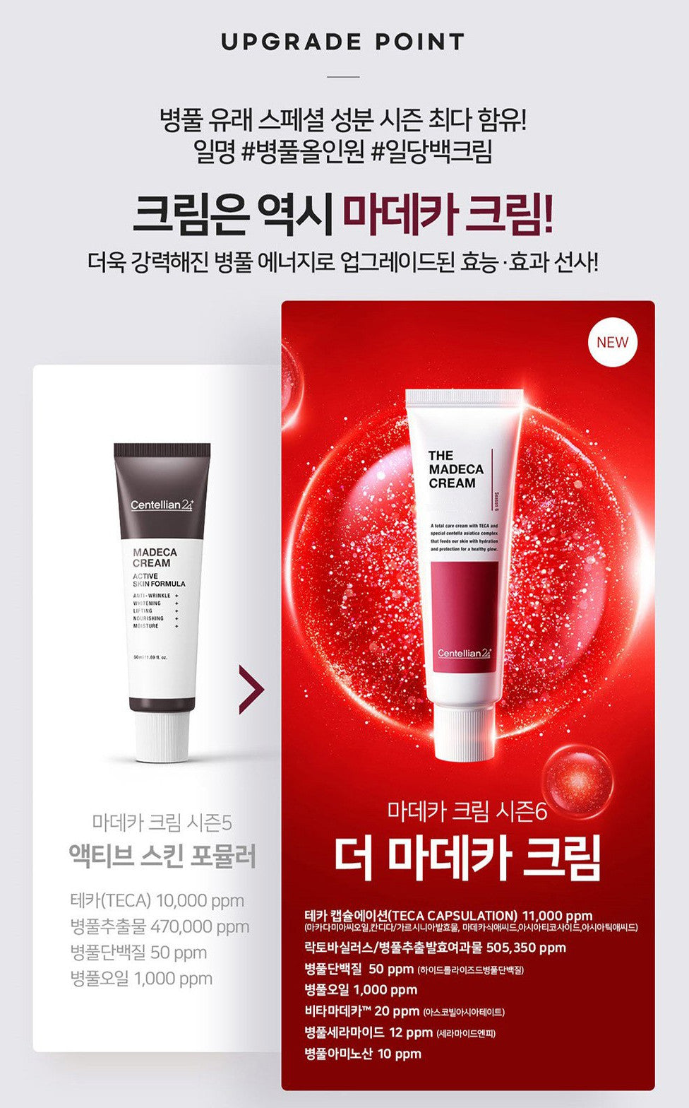 Containing centella asiatica quantitative extract (“TECA) and special core ingredients derived from centella asiatica (lactobacillus/centella extract fermented filtrate, vitamadeca, hydrolyzed bunkle protein, centella asiatica amino acid, etc.) provides more powerful efficacy