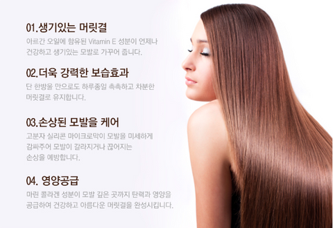 Argan oil, which has excellent moisturizing power, balances oil and moisture in the hair, making dry hair moist and shiny.