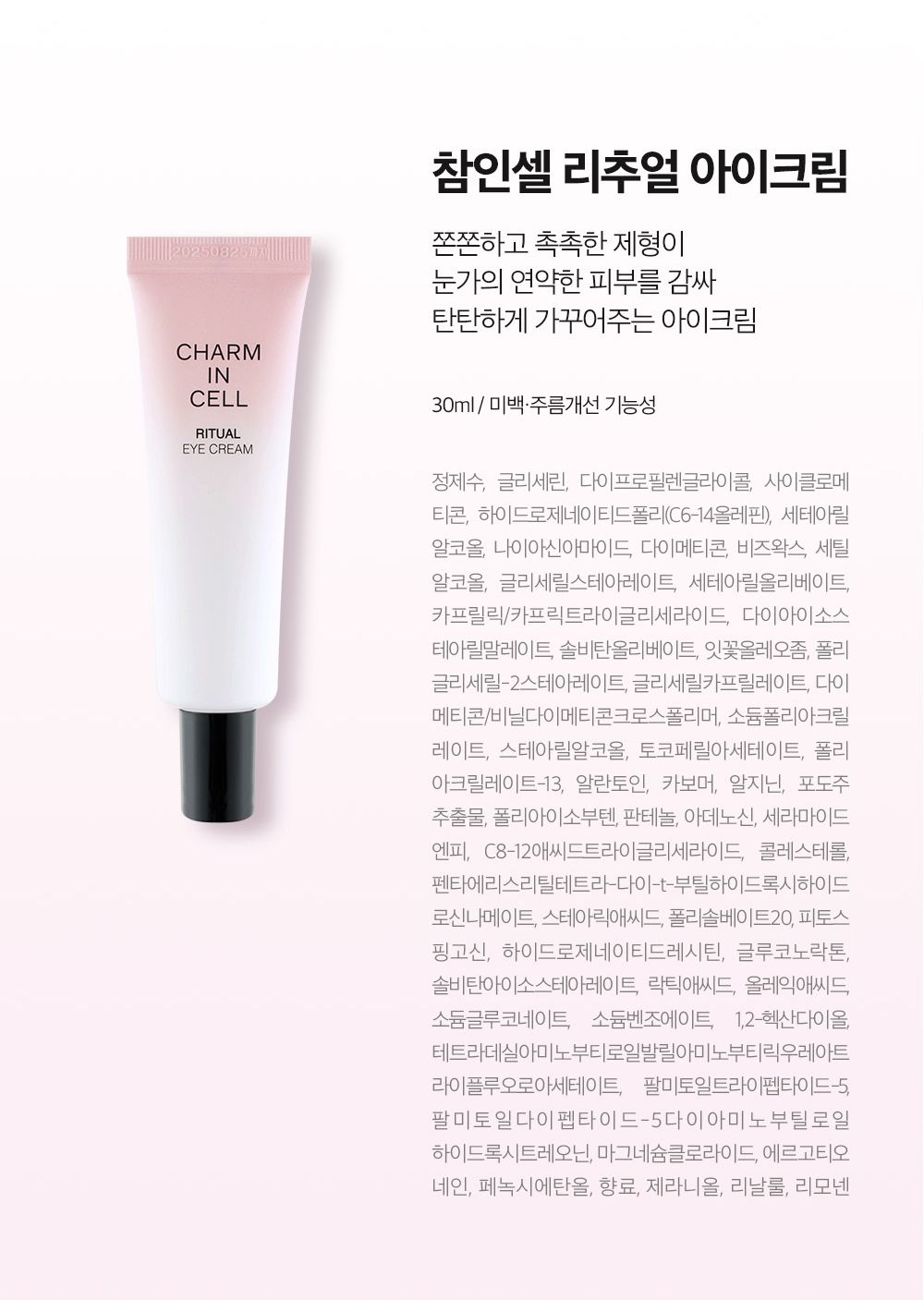 Charmzone Chamincell Ritual Eye Cream is a premium eye care treatment from Charmzone’s advanced Chamincell line. This intensive formula targets all major eye area concerns including fine lines, wrinkles, dark circles, and puffiness. Featuring Charmzone’s proprietary L-Procera and Toco-Vita C complexes, this eye cream delivers visible results for a more youthful, refreshed eye area.