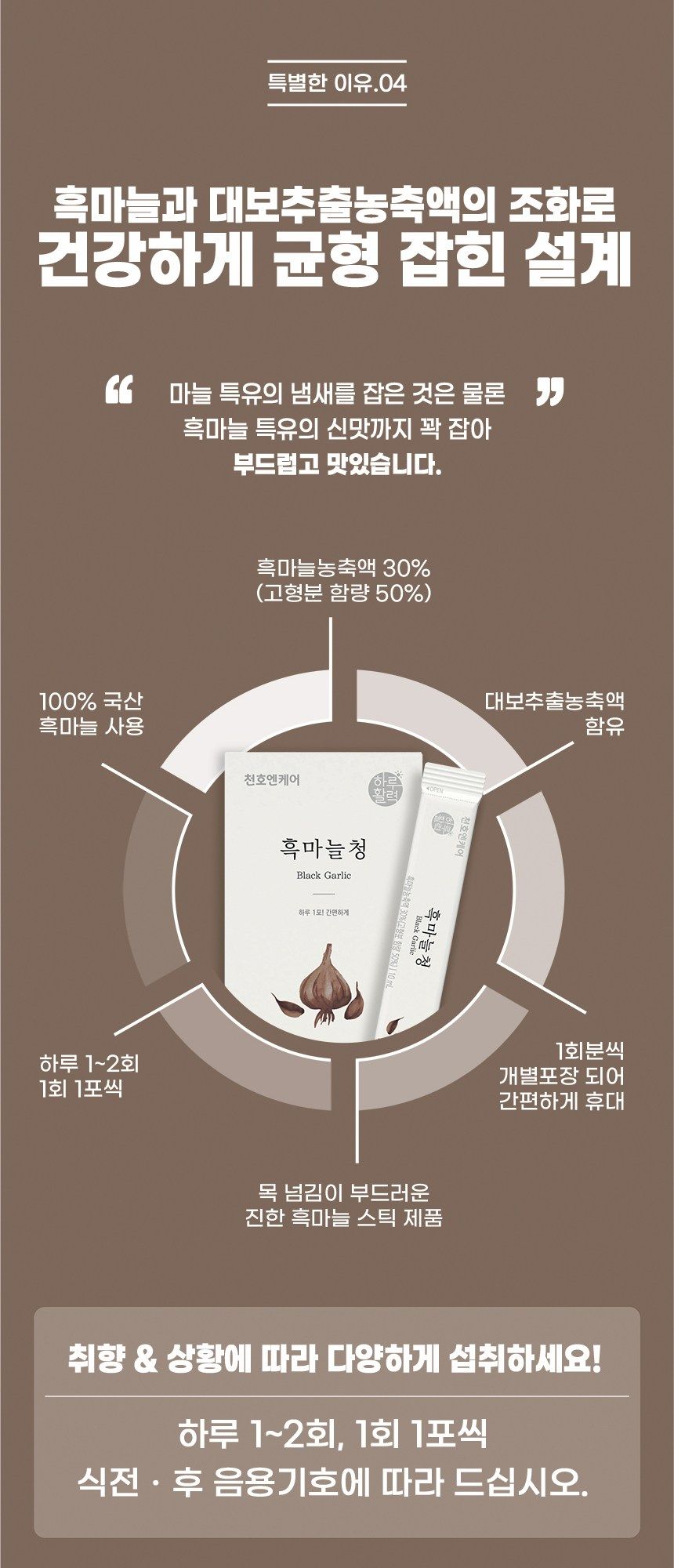 Unlike traditional black garlic, this formula eliminates the strong garlic odor and sourness, creating a smooth and pleasant taste.