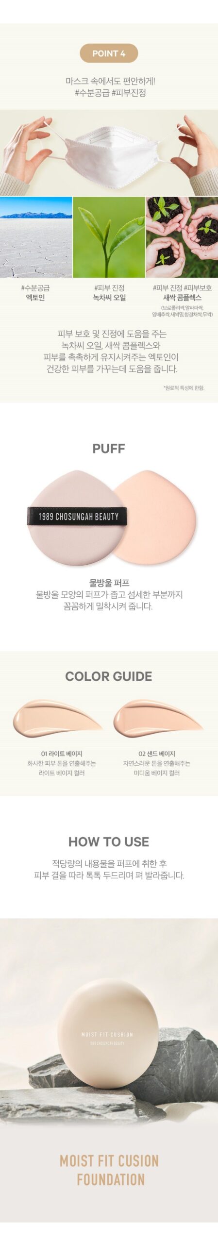 Alright, so I tried out the Chosungah Beauty Moist Fit Cushion Foundation, and let me tell ya, it’s like a breath of fresh air for my skin! Seriously. The hydration is on point; it feels super soft without feeling heavy at all. Like they say about that ‘peeled egg’ vibe? Spot on! I was worried it’d get ruined under my mask during this wild pandemic scene but nah—this stuff stayed put while keeping my skin smooth as silk. Oh! And can we talk about that lovely green tea seed oil? So soothing when you’re battling with dryness from wearing masks all day long. Overall, it’s got that luminous glow that makes you look alive even after a late night binge-watching your fave shows.