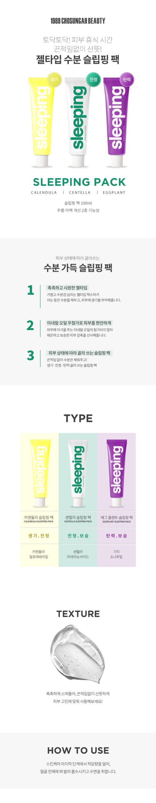 - How to Use: At the end of your skincare routine, take an adequate amount of the sleeping pack, apply evenly over your face, allow it to absorb, and then enjoy a good night’s sleep.