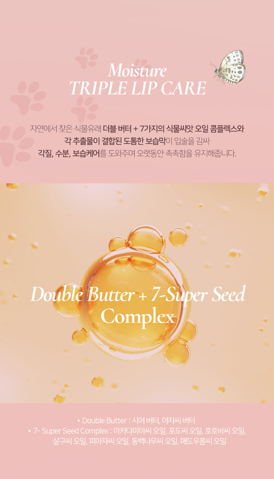 Infused with double butter and a 7-seed oil complex, this formula delivers intensive care for dry lips, boosting moisture and nourishment while helping improve texture and softness. -