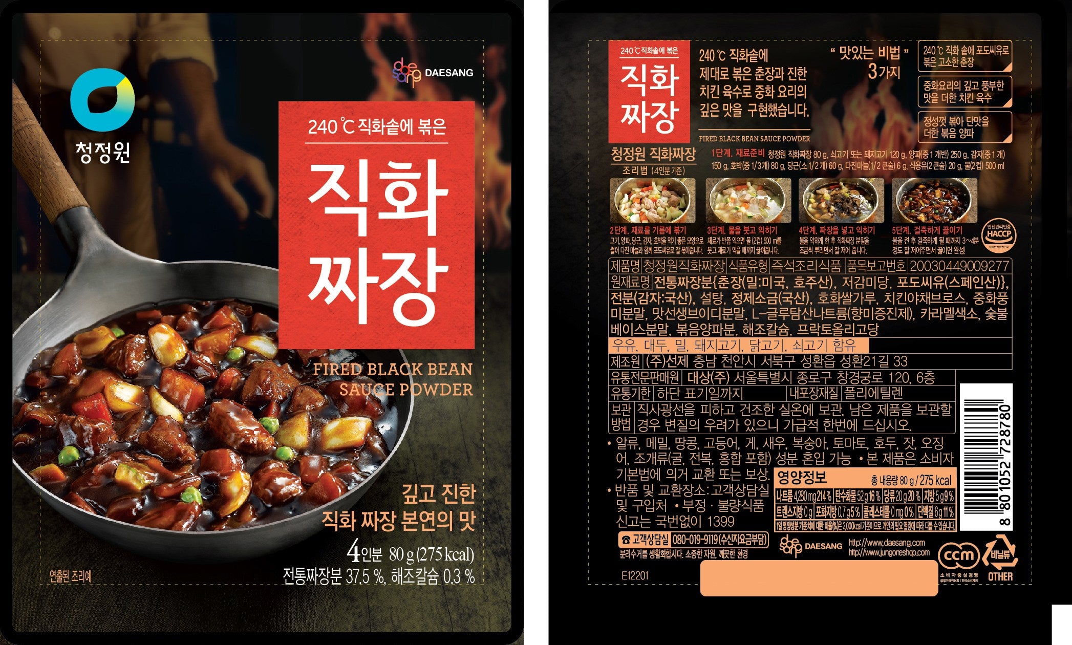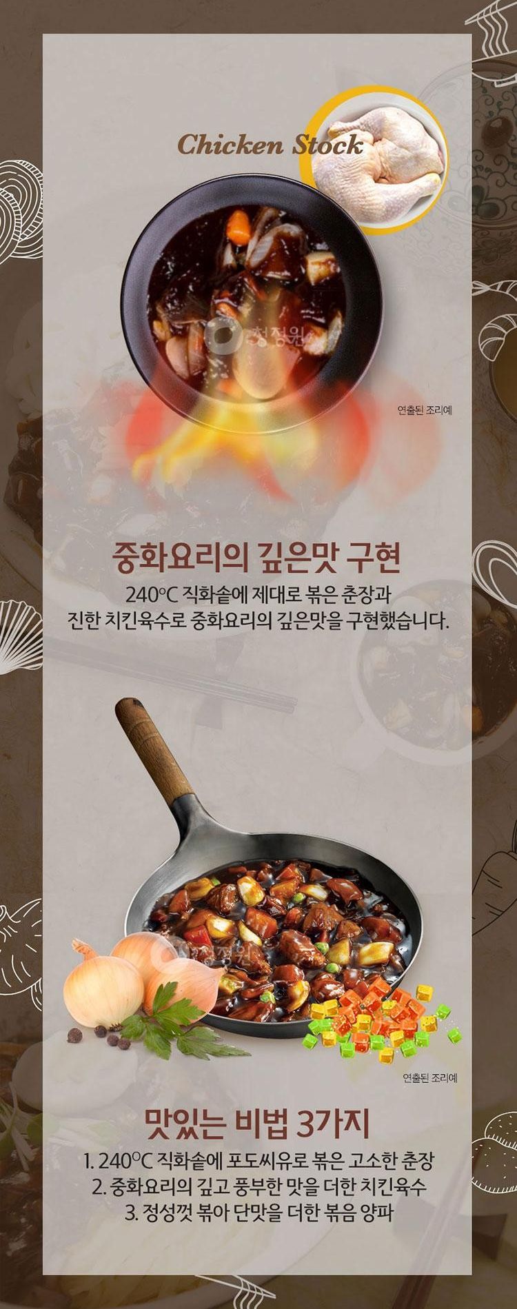 Experience the authentic taste of Chinese cuisine with Cheongjeongwon’s Direct Fire Jjajang. This delightful dish is carefully prepared in a 240℃ open flame pot, ensuring a savory and rich flavor profile. Our key ingredient is the traditional Jjajang powder, comprising 37.5% of the mix, and enhanced with 0.3% seaweed calcium for added nutrition.