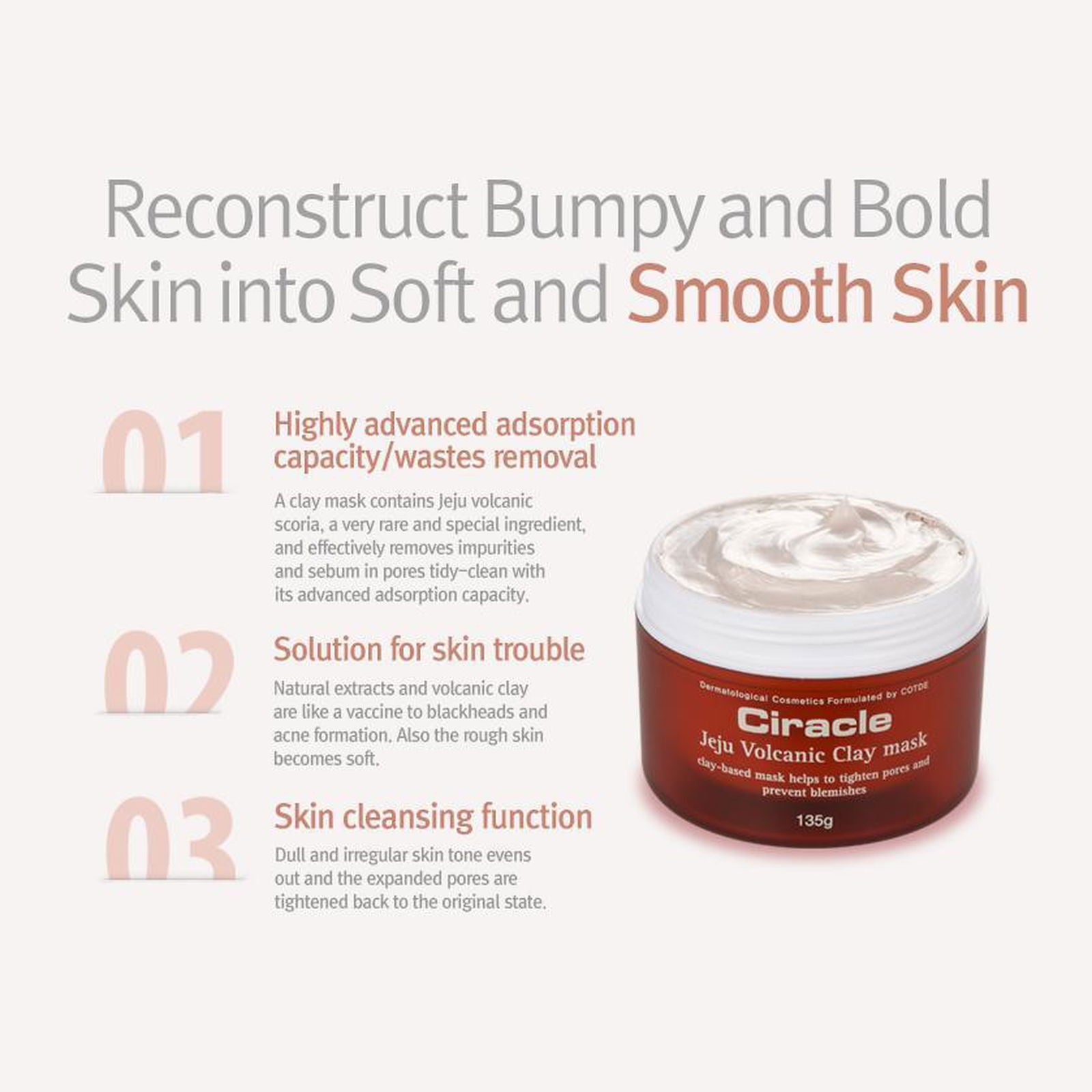 - Experience visibly cleaner and clearer skin. The Jeju volcanic clay deeply penetrates pores to lift away dirt, oil, and dead skin cells that contribute to breakouts and dullness.