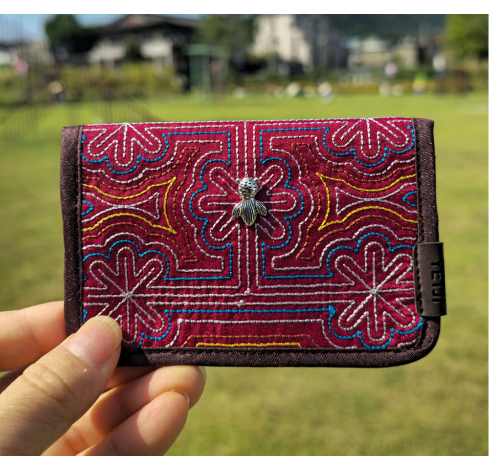 This beautifully crafted card wallet, adorned with colorful quilting and a meaningful fish-shaped metal decoration, is an ideal gift for those who appreciate tradition and elegance.