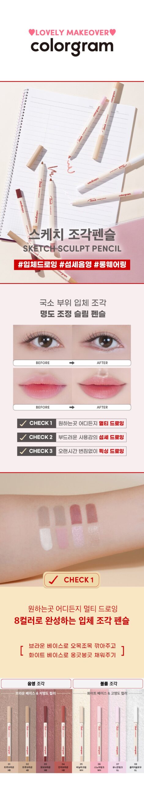 Man, I gotta say this Colorgram Sketch Piece Pencil is a game changer! As someone who’s always dabbling in some face art, I was skeptical at first—thought it might just be another gimmick. But nah, it’s legit! The precision shading really stood out; you can effortlessly draw that perfect contour without looking like you got slapped with makeup. I went for shade 02 because I’m all about that soft brown vibe. It glided on smooth and the wear time? Seriously impressive—all day long without any smudging.