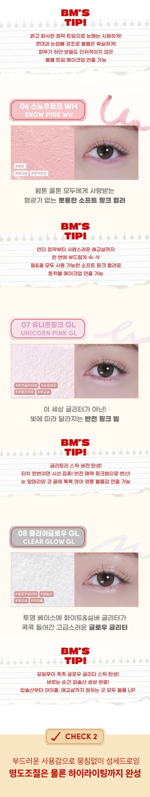 03, 04, 05: Achieve refreshing, bright eyes with vivid color for the mucous membrane area. Emphasize your nose bridge and eyebrow bone for a defined volume, perfect even for fair skin tones.