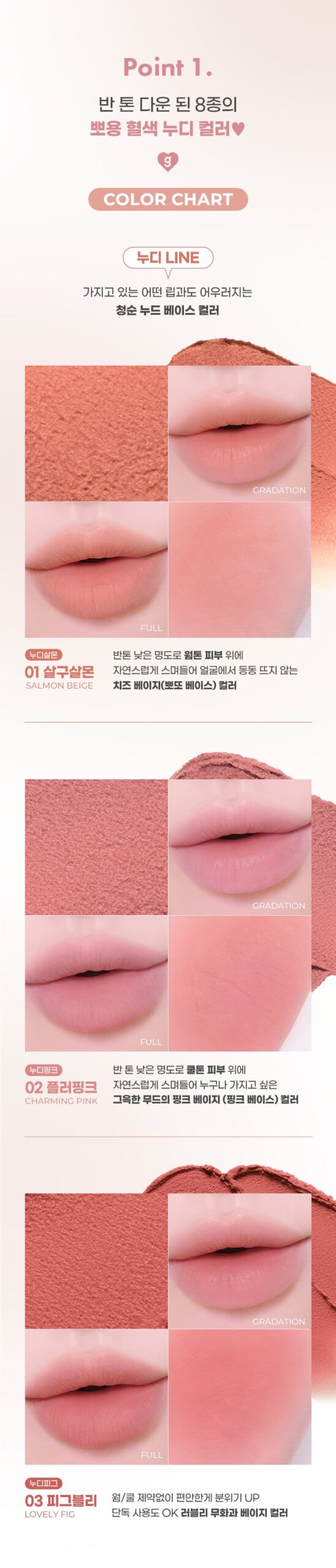 So, I recently grabbed the Colorgram Nude Blur Tint, and I’ve gotta say – I’m pretty stoked about it! The shade is this lovely half-toned nude that fits right in with my skin tone without making me look washed out. What really surprised me was how smooth my lips felt after applying it; no more chapped mess or that annoying dry feeling you get from other tints. It glides on real easy thanks to its nifty angled tip—super handy for those of us who ain’t makeup pros but still wanna look good. Seriously feels like a lip filter in real life! A win in my book for sure.