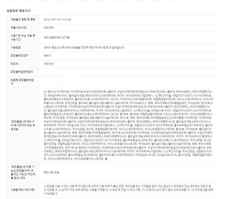 | Benefits | Blurring effect, Long-lasting, Vibrant color, Soft texture, Non-drying |