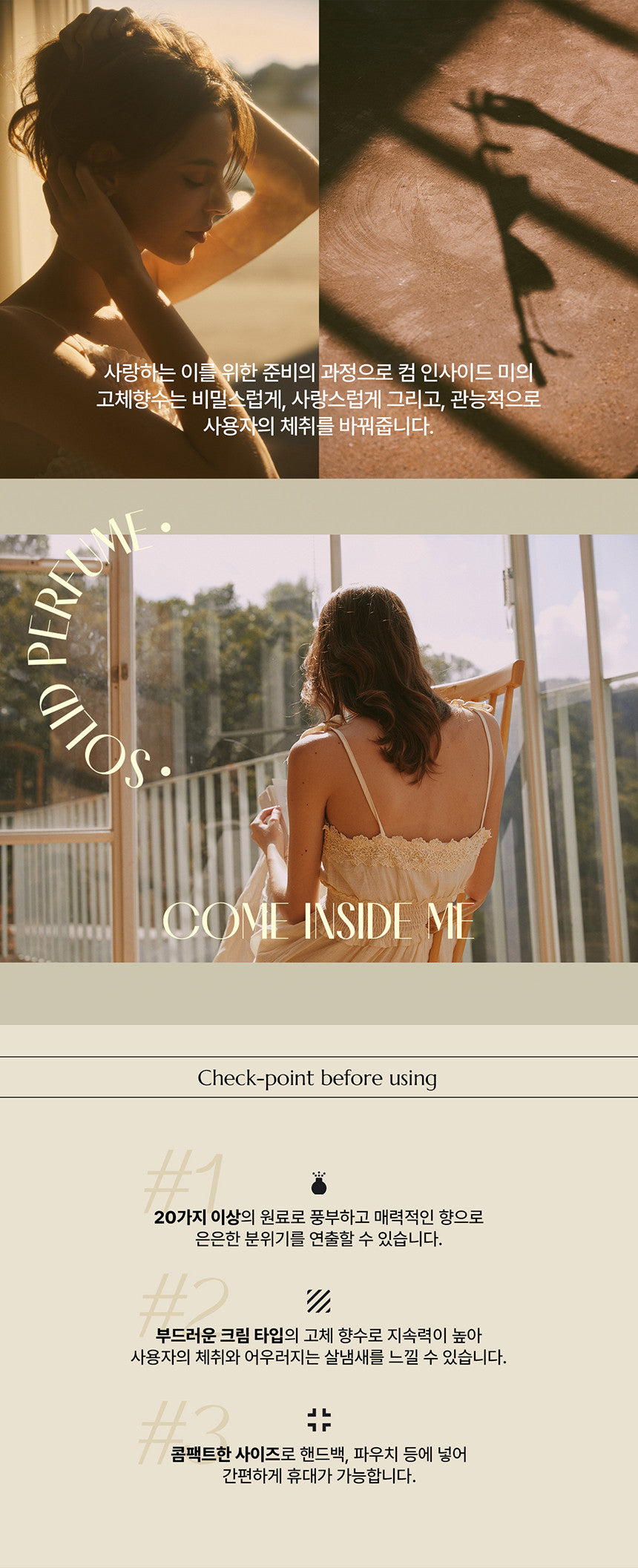 I’ve bought the come inside me Solid Perfume twice now, and I gotta say, it’s my go-to for any occasion! The way it blends with my skin just hits different. The peach and bergamot top notes are like a fresh morning on the coast of Florida—so uplifting! Then you hit that lovely rose in the middle; it’s got this ocean vibe that makes you feel serene but also charmingly elegant. Plus, the musk and patchouli base give off this cozy warmth that’s just right for every season. Can’t resist reordering—it keeps me feeling unique all day long!