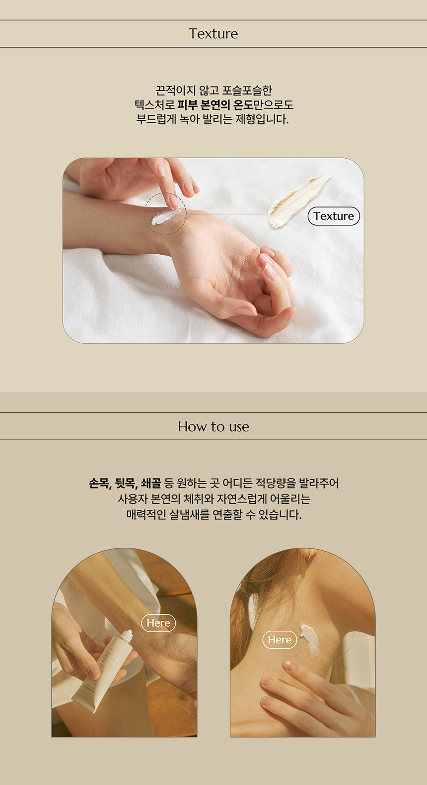After cleansing your body in the morning and evening, apply the perfume to pulse points such as wrists, neck, collarbone, and elbows. The warmth of your skin will enhance the scent over time, allowing it to develop beautifully throughout the day. For a longer-lasting fragrance, apply in small amounts regularly.