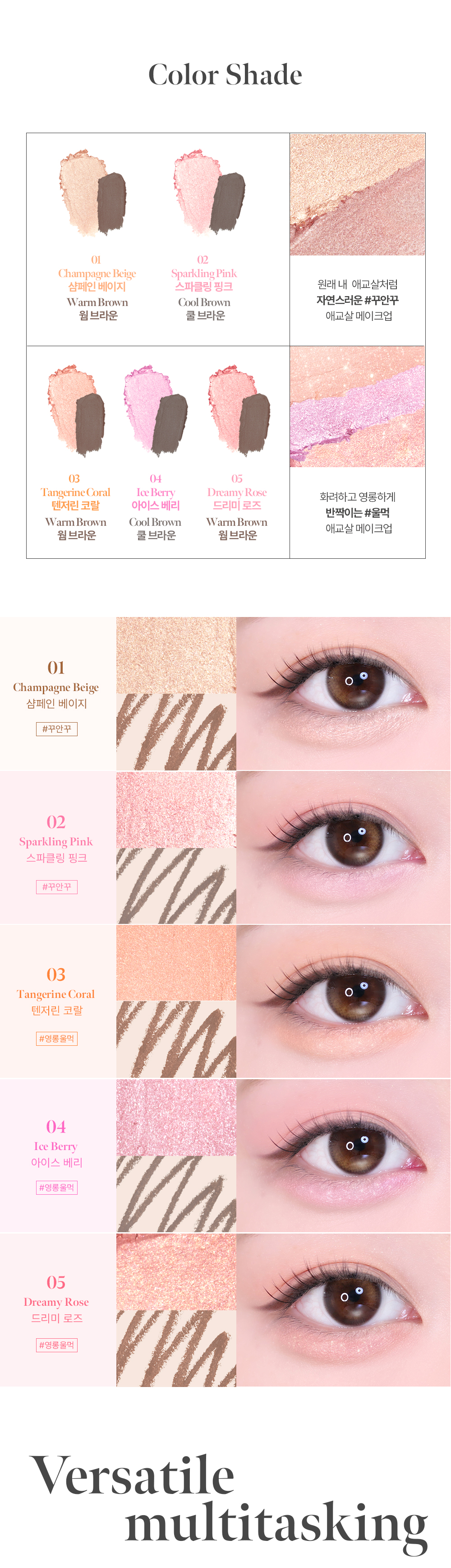 Explore the full range of CORALHAZE Idol Aegyo Sal Maker shades to complete your ultimate eye makeup collection!