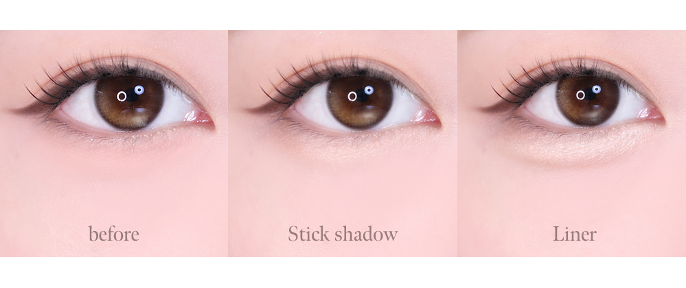 - Step 2 (Shimmering Stick): Apply the shimmering stick directly onto the area above the shadow line to highlight and add volume, making your eyes sparkle with a natural glow.