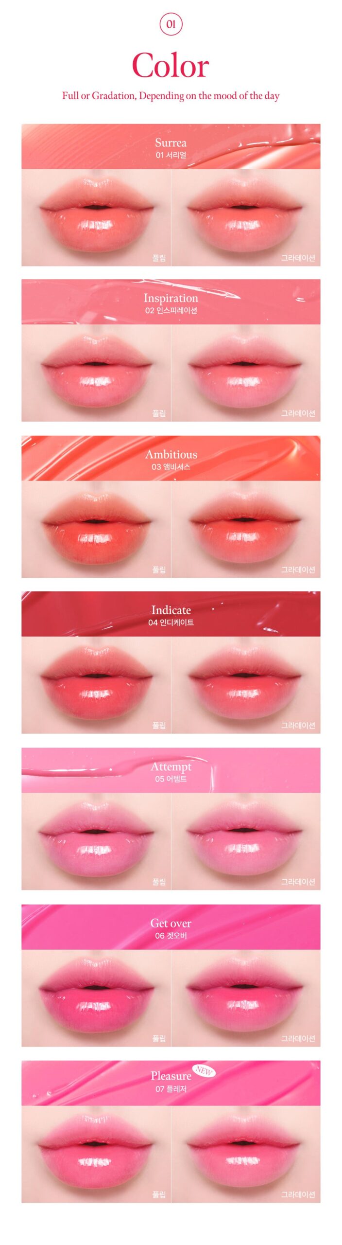 - Bright Coral Warm Tone: For a soft coral that brightens your face, try combining shades 01 + 03.