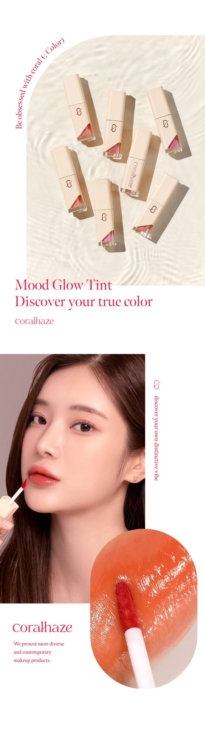 Eclipse your usual beauty routine with coralhaze’s Mood Glow Tint. A luscious kiss of vibrant color that dances like morning dew on my lips, effortlessly enhancing every smile!