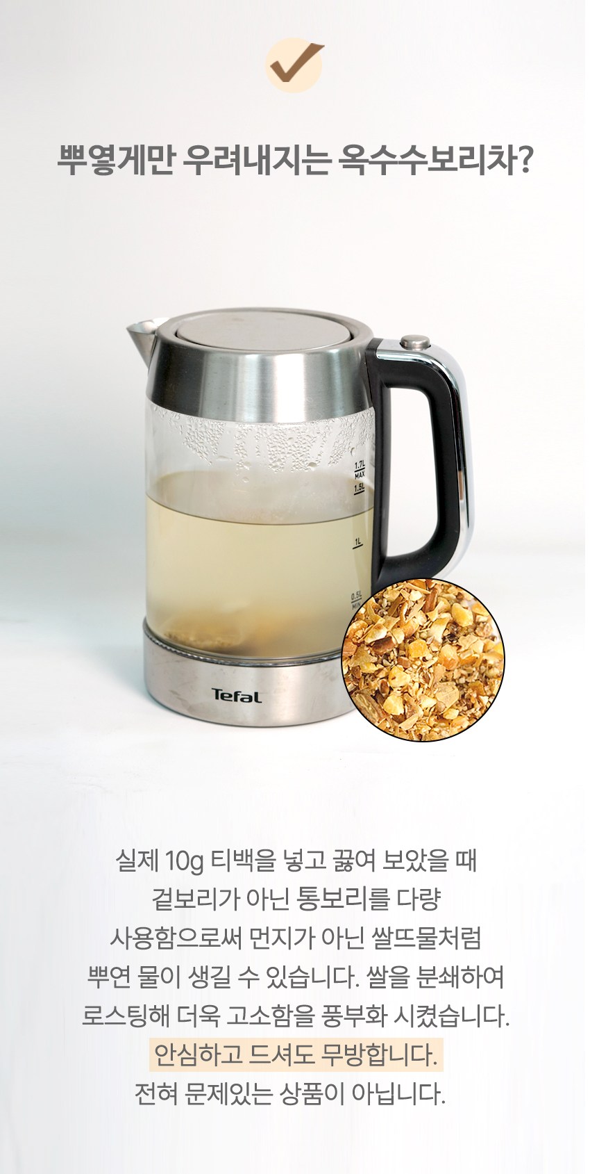 Unlike other teas that can taste burnt, this blend is evenly roasted to preserve the natural aroma of corn and barley. When brewed, the tea water may appear slightly cloudy like rice water—a natural effect of the whole barley used, ensuring a rich and satisfying flavor.