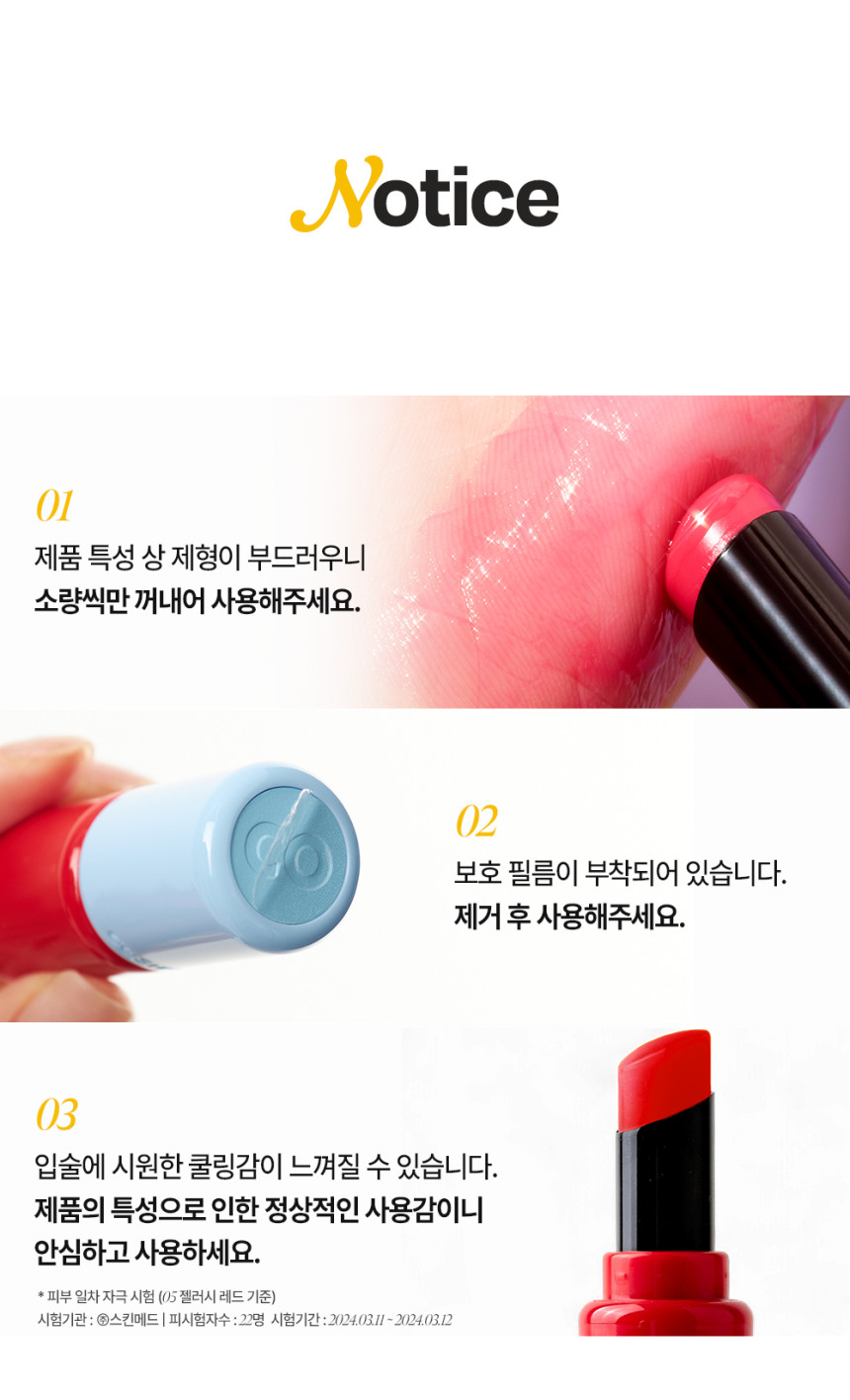 - You may feel a cooling sensation on the lips. This is a normal characteristic of the product, so please use with confidence.
