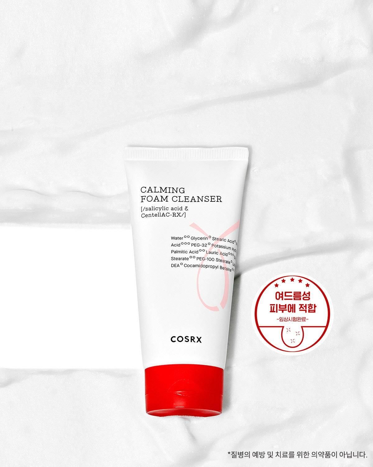 The AC Calming Foam Cleanser by Cosrx is a perfect daily cleanser that not only combats breakouts but also heals damaged skin. This creamy foam cleanser is formulated with Cosrx’s unique CentellAC-Rx Complex that optimizes the natural regenerating benefits of centella asiatica, including soothing irritation, strengthening skin’s barrier and maintaining balanced skin. Salicylic acid gently removes dead skin cells and excess oil to keep skin blemish-free without over-drying. The CentellAC-Rx combined with the salicylic acid will leave skin clear, soothed and soft. This foaming cleanser is non-acnegenic, hypoallergenic, dermatologist-tested, gluten-free, and cruelty-free. Made without oils, silicone, artificial fragrances or parabens. Great for all skin types, especially those with oily and acne-prone skin.