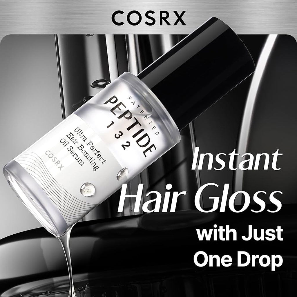 The COSRX PEPTIDE-132 Ultra Perfect Hair Bonding Oil Serum is a high-performance bonding oil serum that forms a protective barrier by coating damaged hair with nutrient-rich botanical oils. Its feather-light formula absorbs quickly without any greasy residue, delivering instant softness and shine. Fortified with patented PEPTIDE-132™, it fills in weakened areas and locks in moisture and nutrients. Also contains Vitamin E and 7 types of plant-based oils for hair nourishment and improving hair gloss.