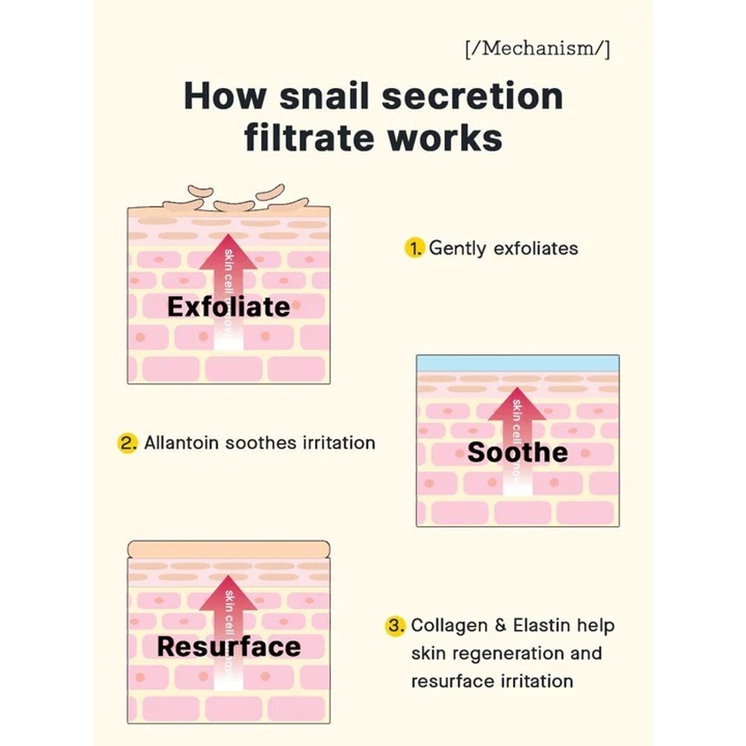 - 92% Snail Mucin: A high concentration of snail mucin supports skin regeneration and builds a moisture barrier to hydrate and soothe the skin.