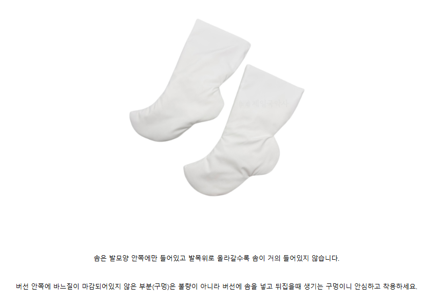 Small unfinished seams or tiny holes inside are part of the normal production process. These occur when the beoseon are turned inside out after the cotton lining is inserted. They are not defects, so you can wear them with confidence.