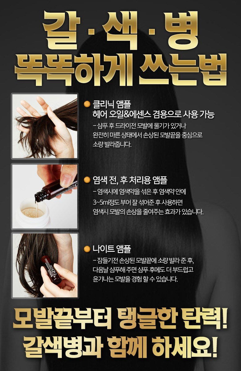 - As a Clinic Ampoule: Use as hair oil or essence on damp or dry hair after shampooing.