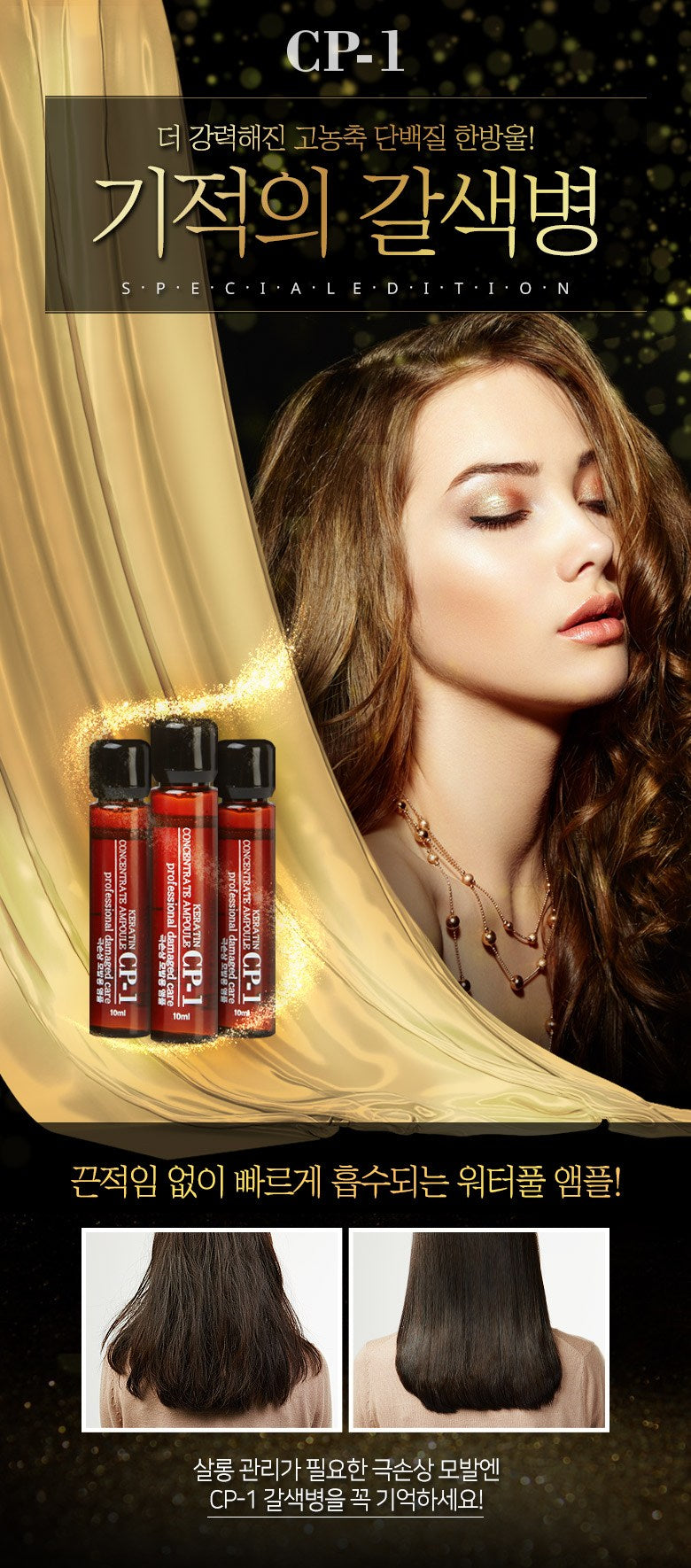 Our unique blend ensures that your hair retains its natural shine and fragrance, minus the oiliness. When mixed with hair dye, the CP-1 ampoule acts as a protective barrier, minimizing damage and hair loss during the dyeing process.