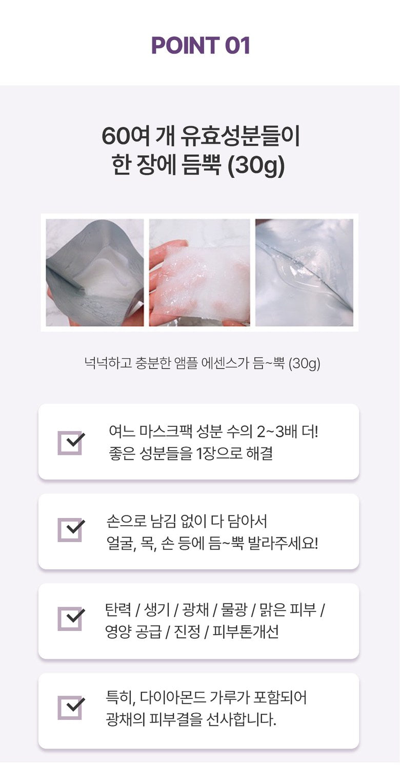 - Each sheet contains 30g of ampoule essence, offering abundant hydration and nourishment.