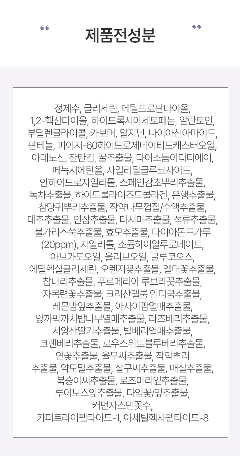 - Collagen: Promotes moisture retention and skin firmness.