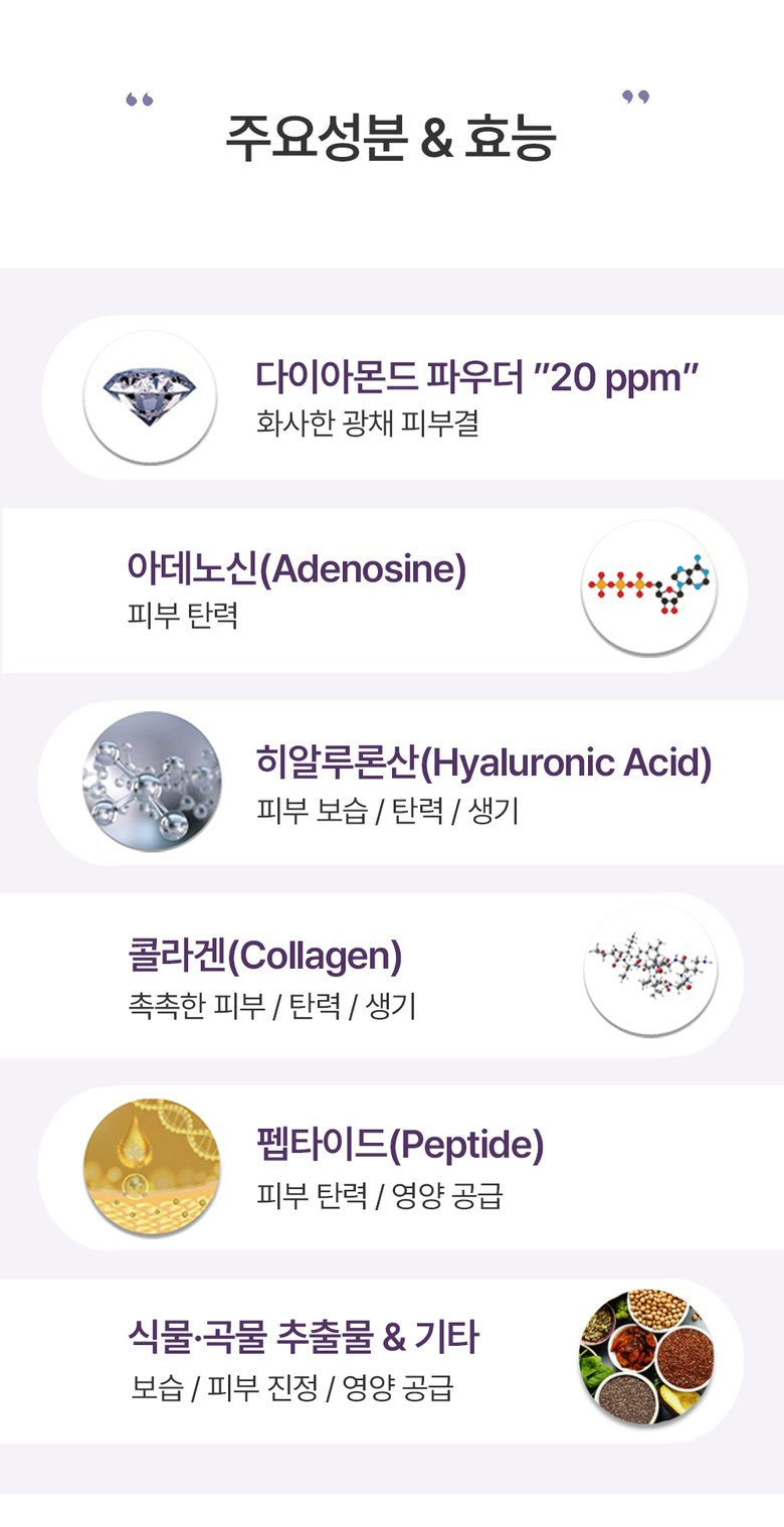 - Infused with diamond powder for a radiant, glowing complexion.