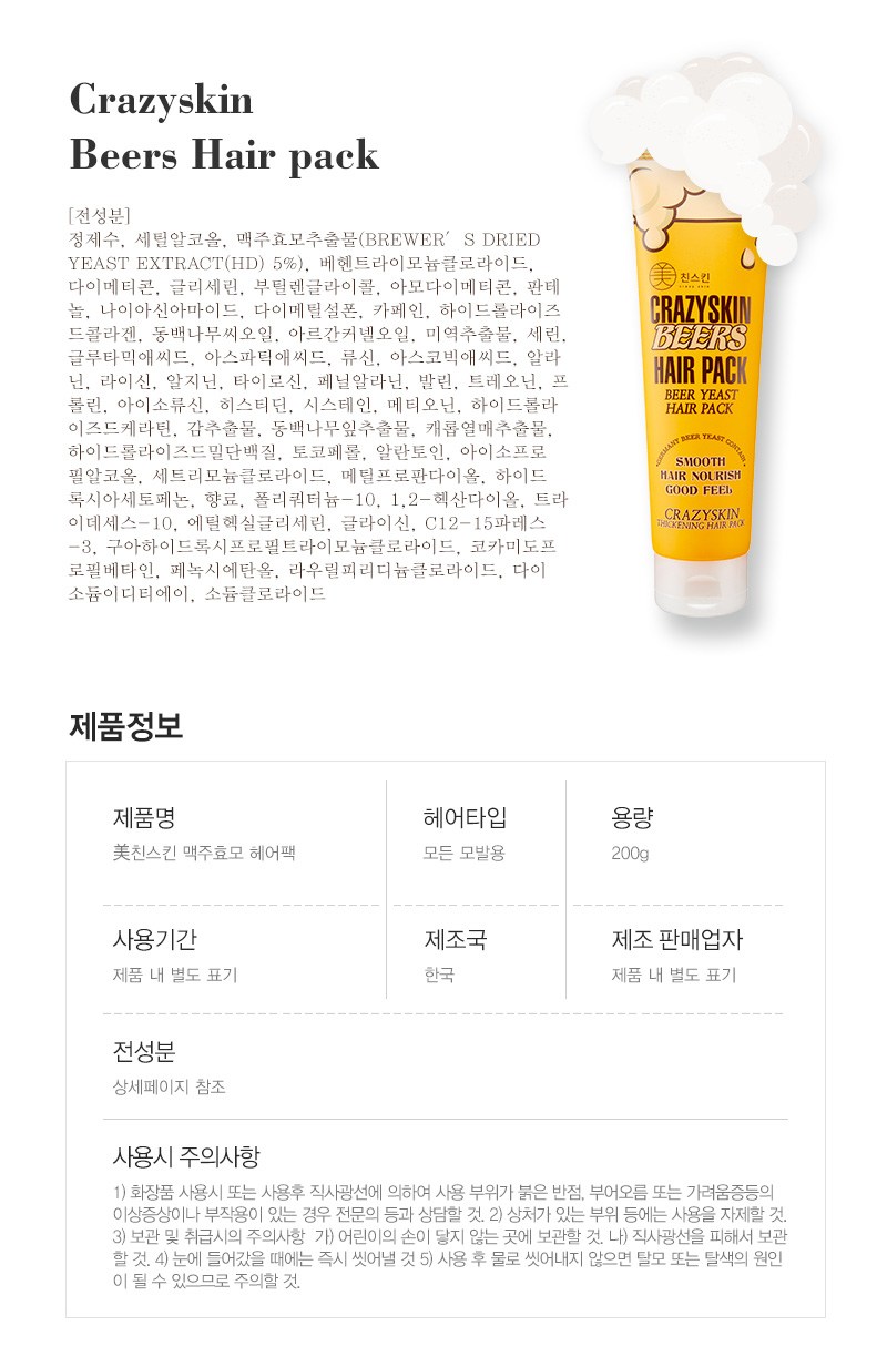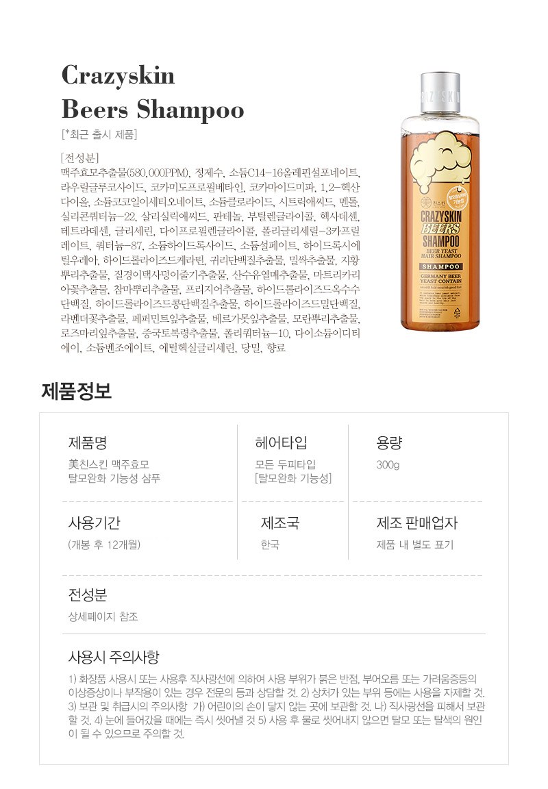 | Product Name | CRAZYSKIN Beer Yeast Hair Loss Relief Shampoo & Hair Pack Set |