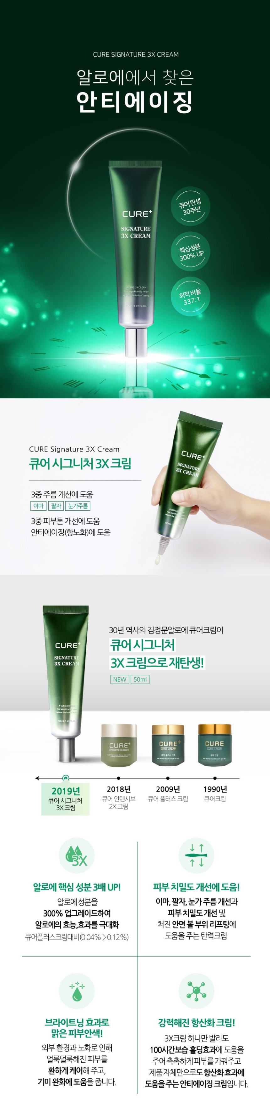 Experience the evolution of skin care with Cure Signature 3X Cream, meticulously crafted to carry on the 30-year legacy of Kim Jeong-moon Aloe Cure Cream. This revolutionary formula now boasts aloe core ingredients at triple the concentration, offering an unparalleled 300% boost to harness the maximum benefits of aloe for your skin.
