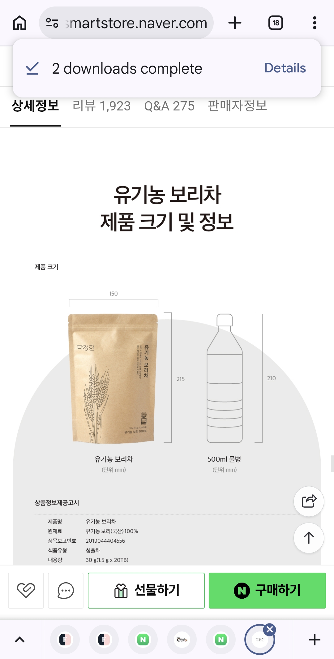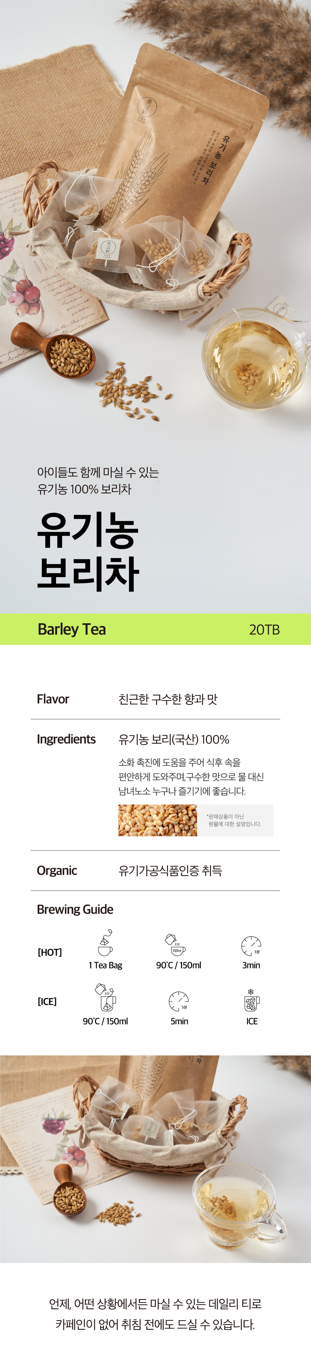 | Ingredients | 100% Organic Barley (Korean Domestic) |