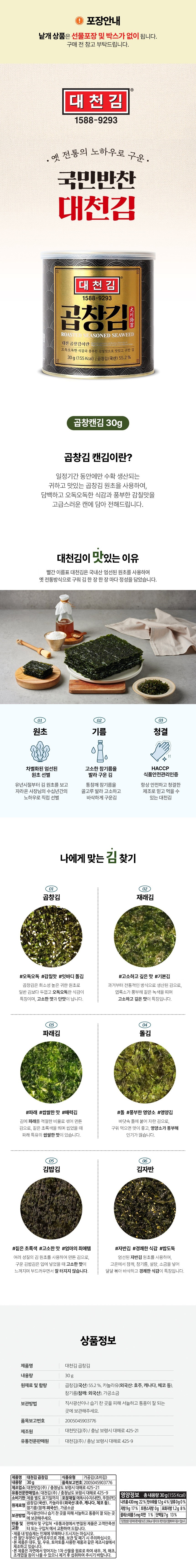 Whether you’re seeking a quick bite or a gourmet accompaniment, Daecheon Kim Gopchang Seaweed is your ideal choice: